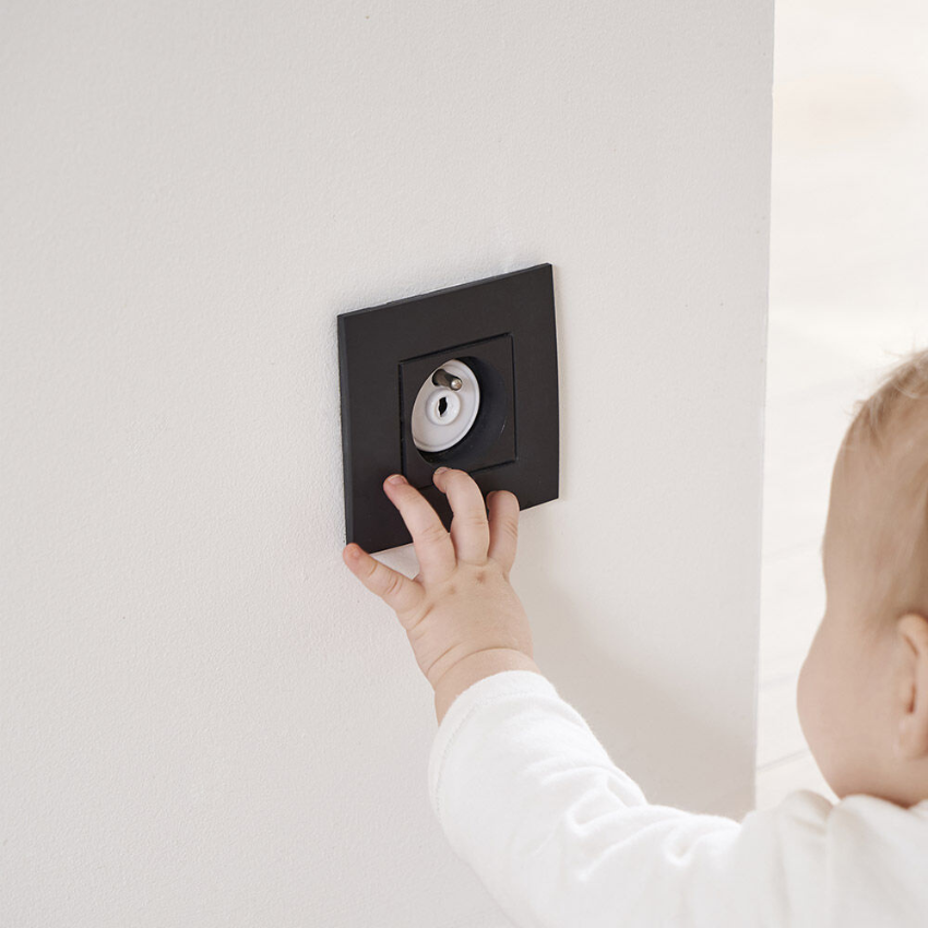 ● Protegemos todos los enchufes eléctricos a su alcance: deben instalarse tapas de enchufes. También evitaremos dejar cables de alimentación de diferentes accesorios enchufados a la vista.